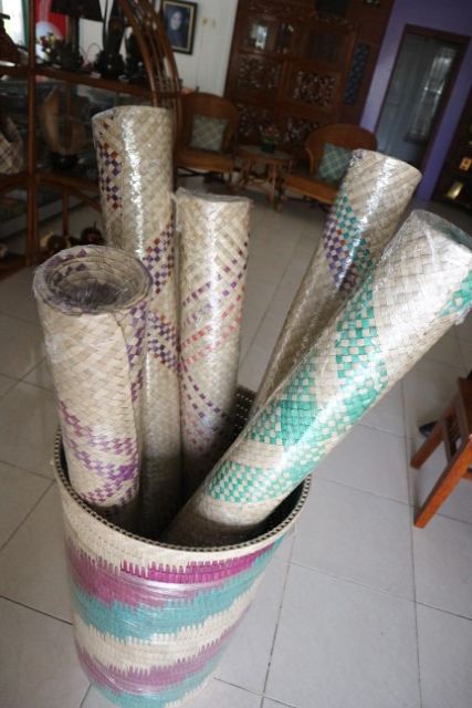 ![]() Anyaman tikar asal Indragiri Hilir | ![]() Foto bersama pengrajin anyaman Mawar Suci saat dikunjungi awak media |