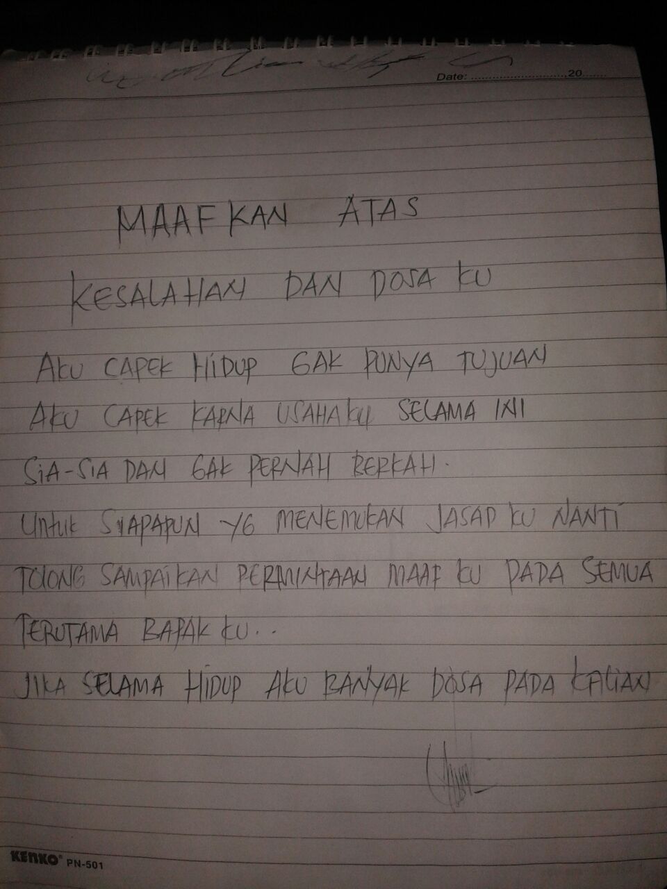 UNTUK SIAPAPUN YG MENEMUKAN JASAD KU NANTI, TOLONG SAMPAIKAN PERMINTAAN MAAF KU PADA SEMUA