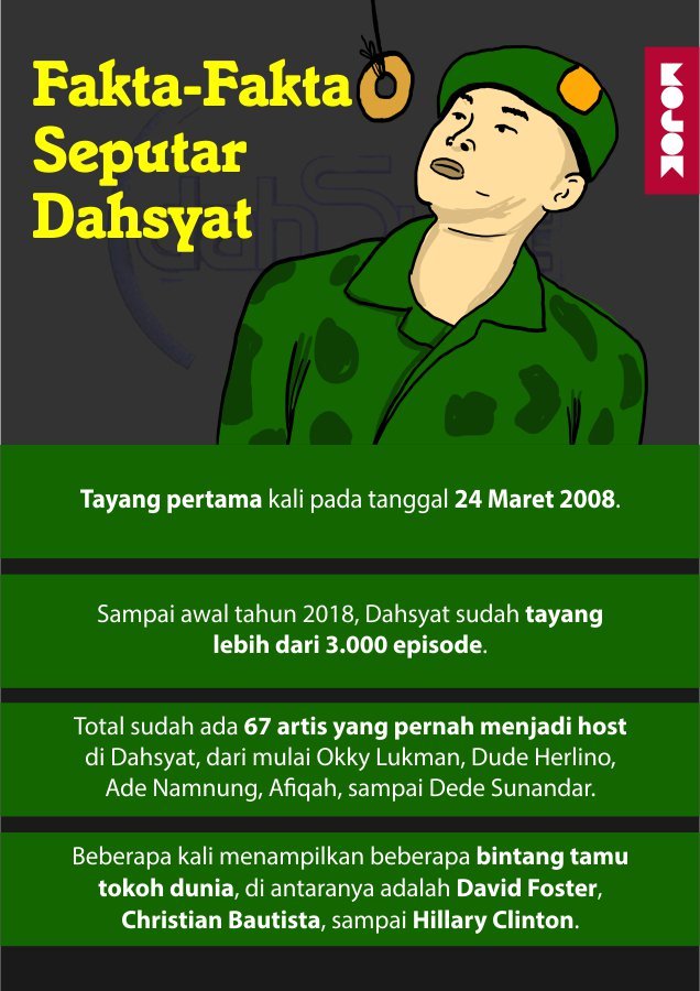 MEDIALOKAL.CO - Rasanya memang tak berlebihan jika menyebut Dahsyat sebagai salah acara yang banyak tersandung kasus. Berkali-kali sudah Dahsyat mendapat teguran dan sanksi dari KPI dengan berbagai sebab, dari mulai adanya ucapan tidak senonoh, goyang dribel, penampilan jenglot, penghinaan lambang Pancasila (kasus bebek nungging Zazkia Gotik), sampai kasus pelecehan agama (kasus Islam Prosetan chef Renne).