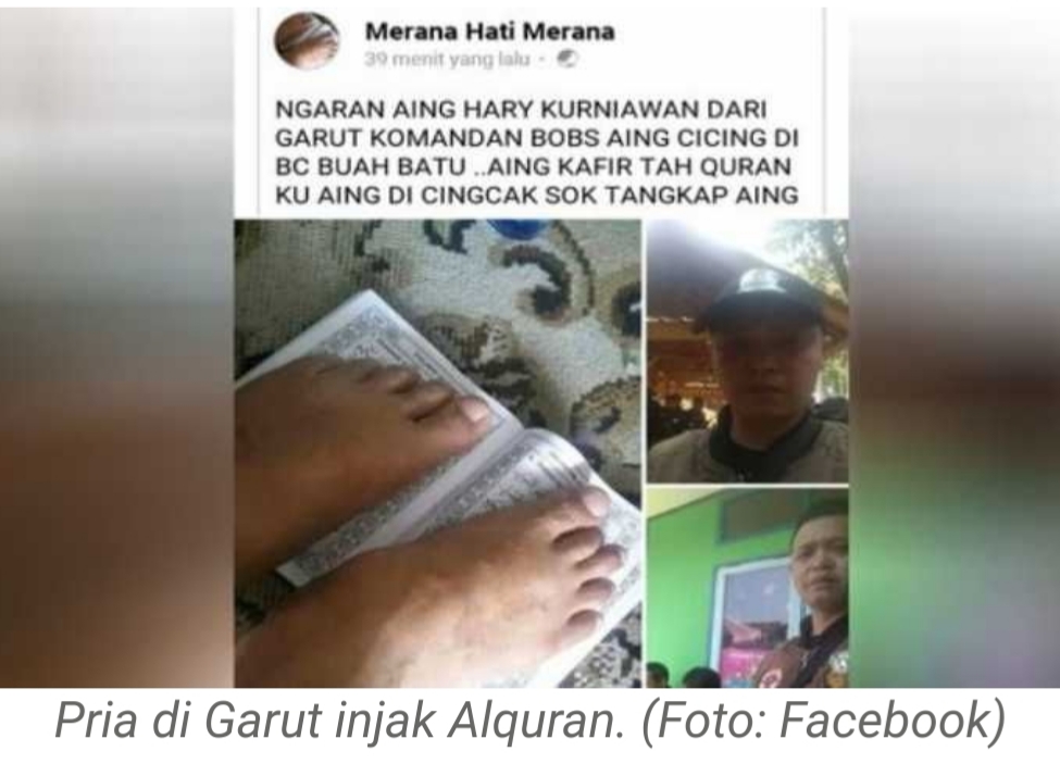 Dikutip dari terkini.id--jaringan--Suara.com, lelaki yang diduga mengijak Alquran itu berasal dari Garut, Jawa Barat.