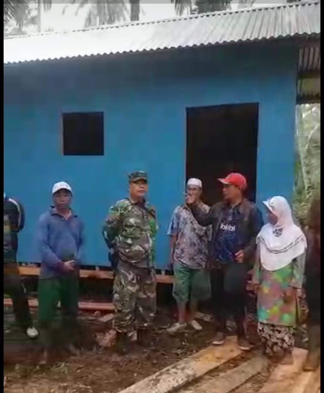 Dekat dengan Masyarakat, Koramil 06/Kateman dan Warga Desa Tanjung Raja 'Sulap' Rumah Janda 62 Tahun