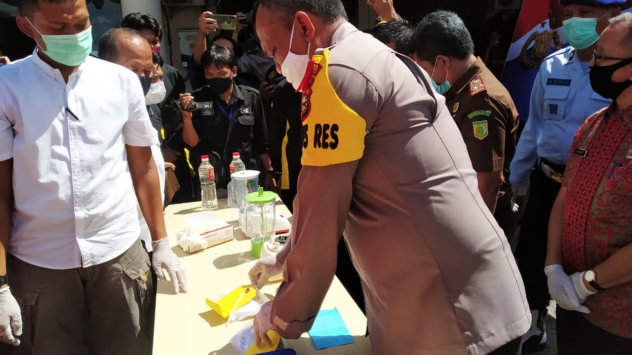 TEMBILAHAN, Medialokal.co - Polres Inhil menggelar press Conference pemusnahan barang bukti narkotika jenis shabu dan pil ekstasi di Mapolres Inhil, Kamis (16/7/20).