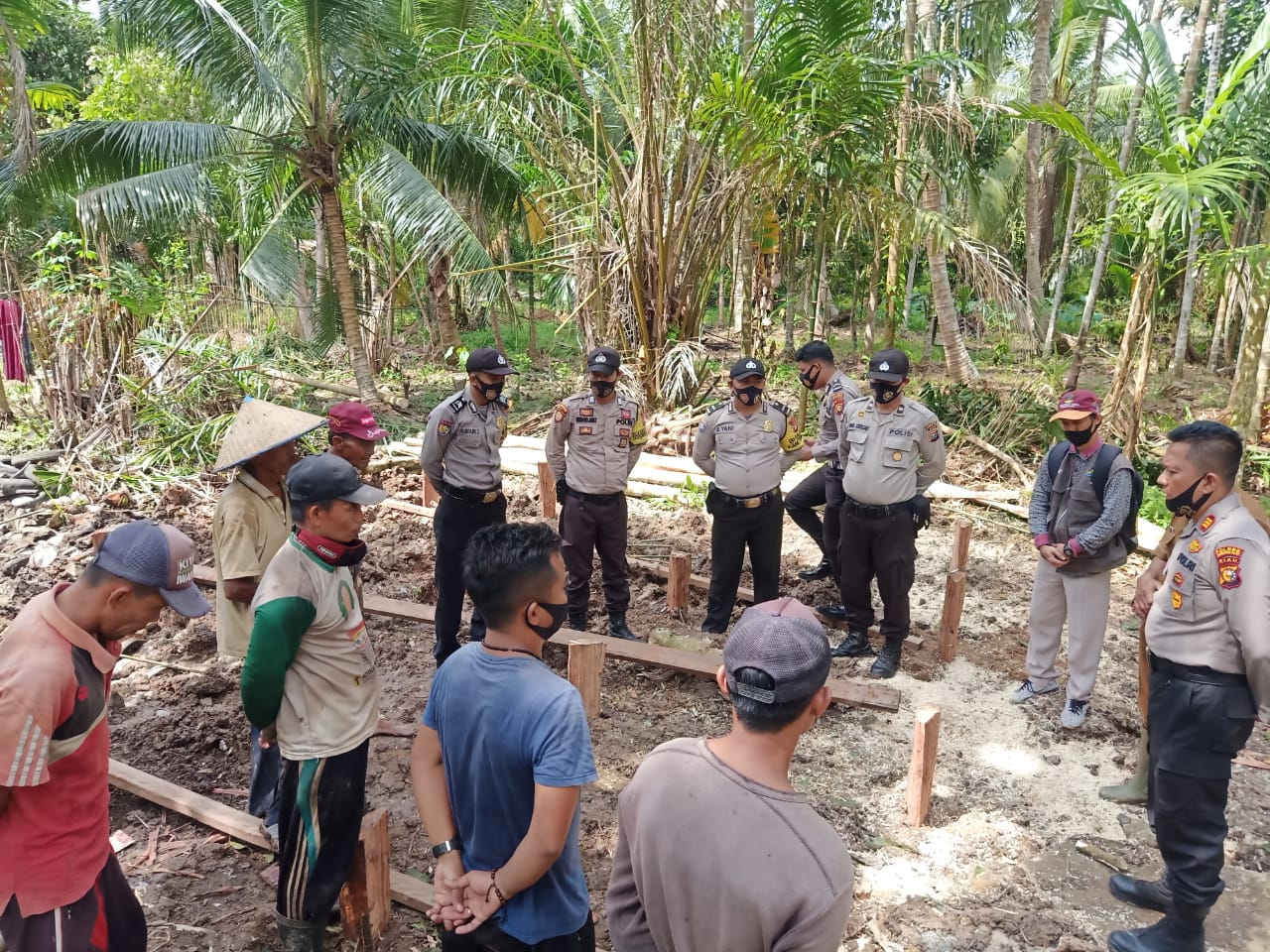 Kapolsek Tembilahan Hulu Turun Langsung Pembangunan Rumah Ibu Nurhayati di Sialang Panjang