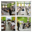 Uniknya, guru tersebut tidak menjelaskan materi dengan media papan tulis. Ia memanfaatkan perabot rumah tangga kecil untuk menuliskan apa yang harus diajarkannya.