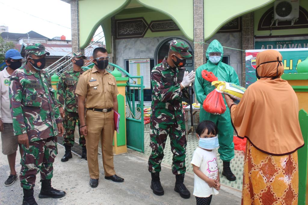 TEMBILAHAN, Medialokal.co - Sebagai wujud tali asih kepada warga terdampak Covid-19, Dandim 0314/Inhil Letkol Inf Imir Faishal menyerahkan sembako secara simbolis kepada warga di RT 05/08 Jalan Kampung Jawa, bertempat di Mesjid Al Dakwah Jalan Haji Said, Tembilahan Kota, Kabupaten Inhil, Senin (28/09/2020).