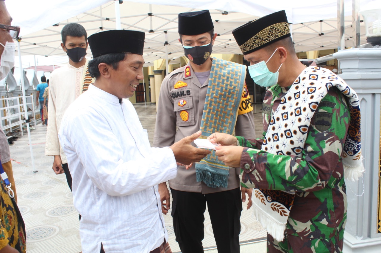 Pada kesempatan tersebut, Dandim Letkol Inf Imir Faishal mengimbau kepada seluruh masyarakat terutama jama'ah Masjid Jami' Raudhatul Muslimin untuk menerapkan protokol kesehatan dengan cara 4 M, yakni Mencuci Tangan, Menggunakan Maker, Menjaga Jarak dan Menghindari kerumunan.