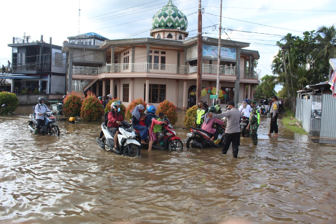 "Sebagai upaya cepat tanggap, kami mengerahkan beberapa anggota untuk membantu pengendara terutama pengendara roda 2 (dua) bersama dengan anggota Polres Inhil untuk mengatur arus lalu lintas. Hal ini tidak lain karena untuk meminimalisir kecelakaan akibat pasang air mencapai setinggi paha orang dewasa," ungkap Kapten Inf Tarmizi.