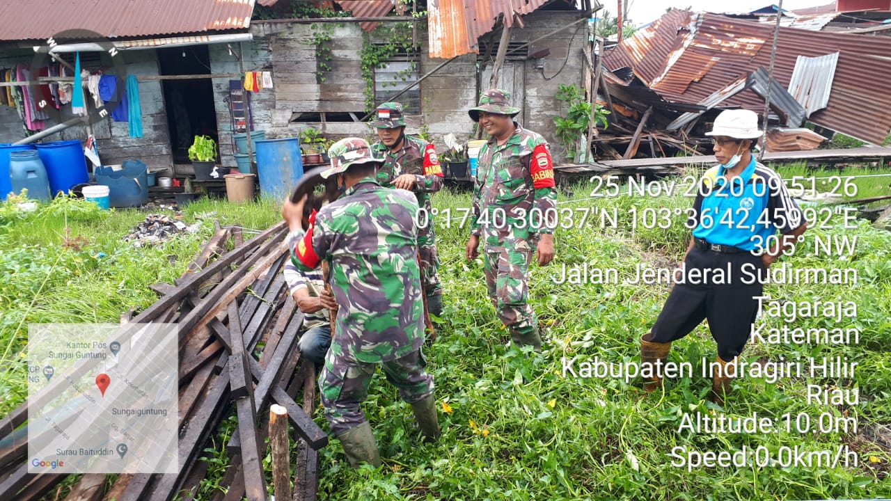 KATEMAN, Medialokal.co - Para Personil Koramil 06/Kateman Kodim 0314/Inhil dibawah kepemimpinan Danramil 06/Kateman Kapten Inf Iwan Andoko melaksanakan kegiatan bedah rumah milik warga kurang mampu di wilayah binaannya.