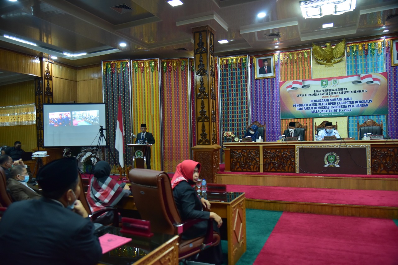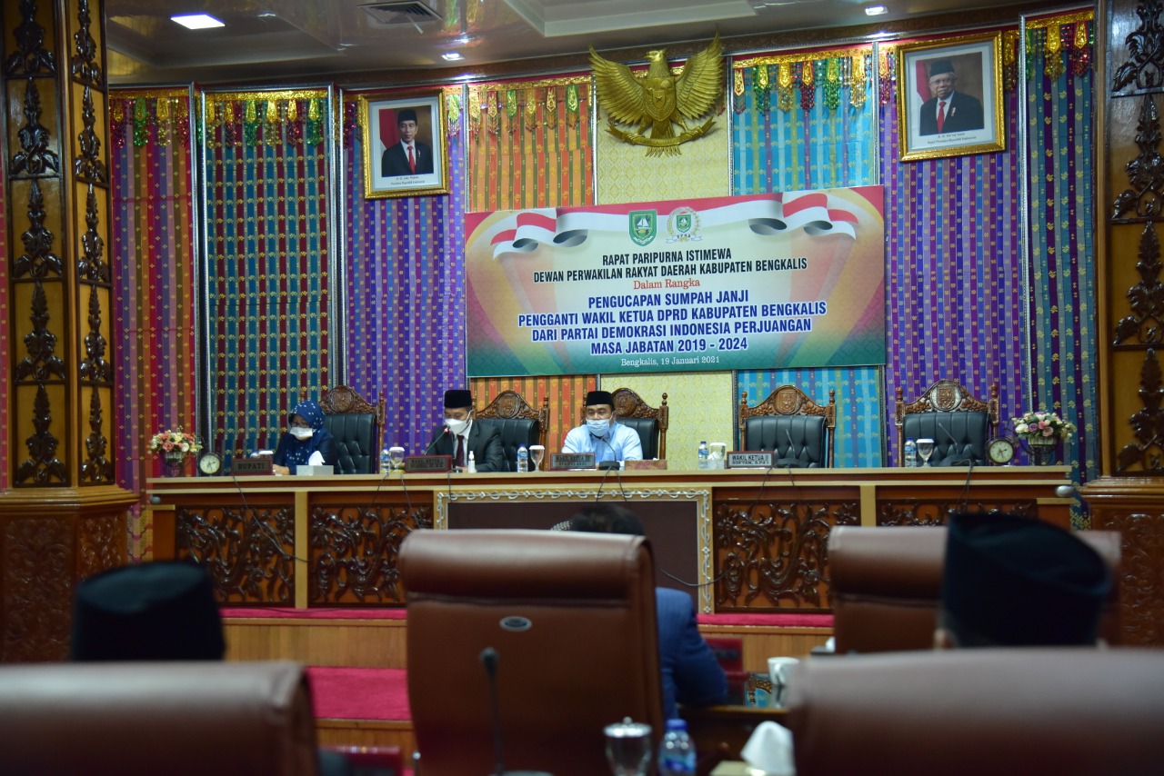 BENGKALIS, Medialokal.co - Syahrial,ST.,M.Si Wakil Ketua I DPRD Kabupaten Bengkalis dari Fraksi Golkar Pimpin Rapat Paripurna DPRD Bengkalis tentang Penyampaian Ranperda Rencana Induk Pembangunan Kepariwisataan Kabupaten Bengkalis (RIPPARKAB). Bupati Bengkalis diwakili oleh Asisten I Bupati Bengkalis Hj.Umi Kalsum. Dan dihadiri Wakil Ketua III dan Anggota DPRD Kabupaten Bengkalis baik secara langsung maupun secara virtual, Rapat dimulai pada pukul 14.30 Wib s.d Selesai dilaksanakan di Ruang Paripurna DPRD Bengkalis. Bengkalis (19/01/2021).