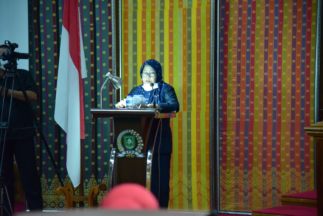 Foto : Hj.Umi Kalsum membacakan Pidato Bupati Bengkalis Penyampaian Pengantar Ranperda RIPPARKAB 2021-2035