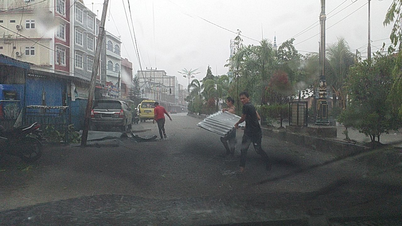 Juga, banyak juga seng dan atap milik warga yang terbang dan lepas lantaran angin kencang.
