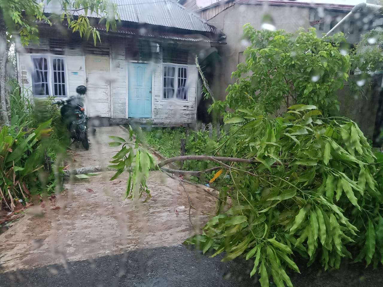 "Dekat samping rumah saya juga, dekat simpang tiga RSUD menuju parit 14," ungkap Syahrul Badrin, salah satu warga yang di sekitar rumahnya terdapat pohon tumbang.
