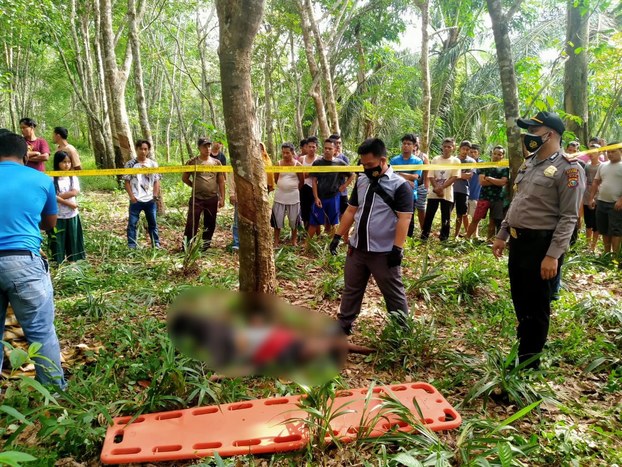 Pria muda ini ditemukan tewas di kebun karet yang terletak di Dusun 10 Kampung Lalang RT 001 RW 026 Desa Kasang Bangsawan Kecamatan Pujud Kabupaten Rohil.