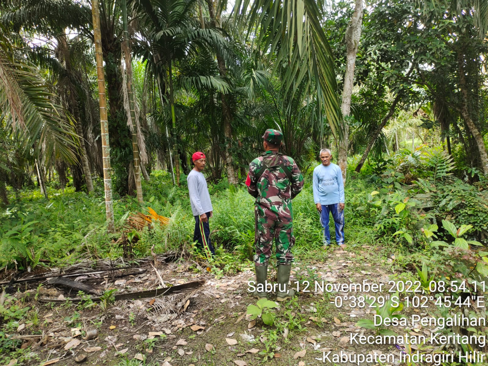 KEMUNING, MEDIALOKAL.CO -- Babinsa Koramil 09/Kemuning, Kodim 0314/Inhil melaksanakan patroli karhutla dan sosialisasi pencegahan di lahan masyarakat di Wilayah Desa Pengalihan Kecamatan Keritang Kabupaten Inhil, Sabtu (12/11/2022).