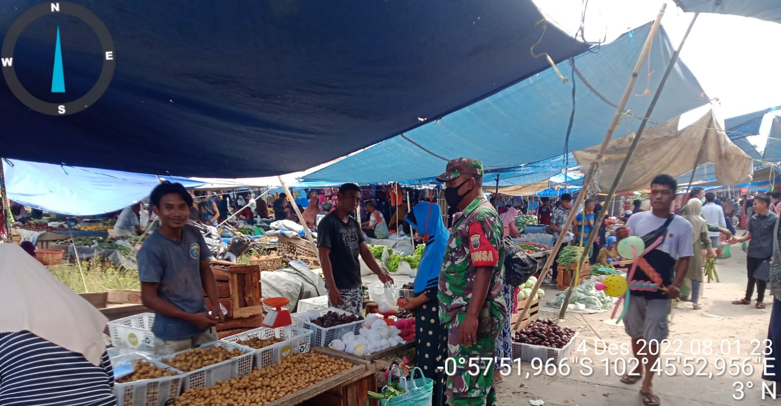 Dalam melaksanakan kegiatan ini, personel Koramil 09/Kemuning bekerja sama dengan aparat terkait. Tidak saja kepada masyarakat yang datang berbelanja, tapi juga kepada pedagang.