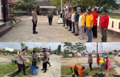 Personil Polsek Gas dan forkopincam Serta Masyarakat lakukan Gotong Royong di Kelurahan Teluk Pinang