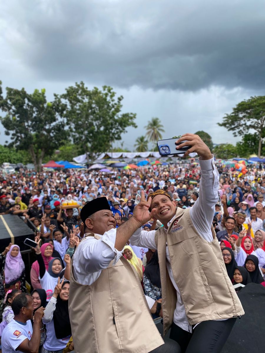 Dari pantauan dan informasi yang dirangkum di lapangan, puluhan ribu massa membanjiri kampanye Paslon yang sama-sama diusung Partai Gerindra dan Partai Demokrat tersebut.