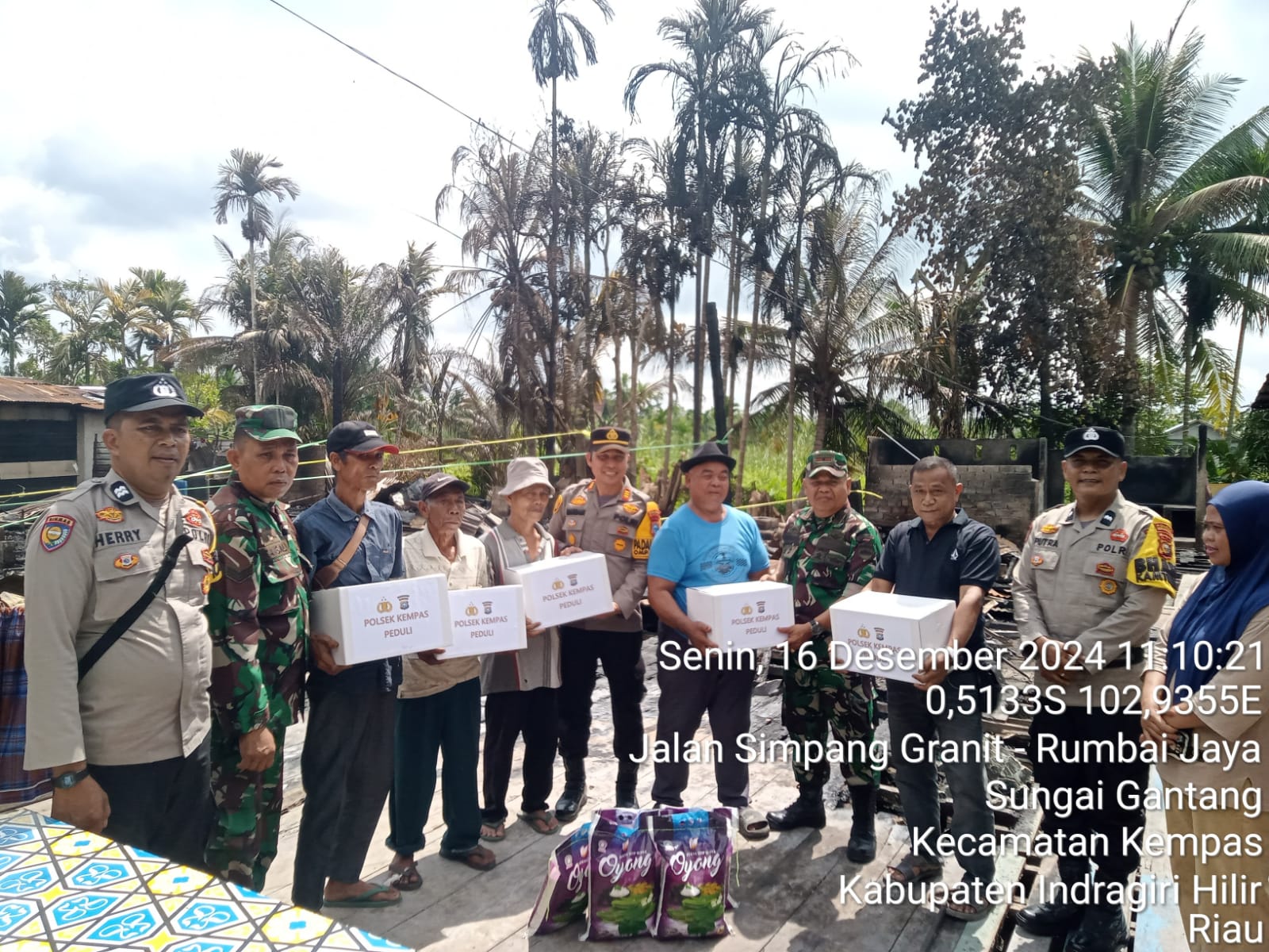 KEMPAS – Sebagai bentuk kepedulian terhadap warga desa binaan yang tertimpa musibah kebakaran, Danramil 03/Tpl Letda Arm Muchazzar Bersama Babinsa dan Polsek Kempas menyerahkan bantuan sosial kepada korban kebakaran rumah yang bertempat di Dusun Rumbai Sejuk Desa Sungai Gantang Kecamatan Kempas Kabupaten Inhil, Senin (16/12/2024).