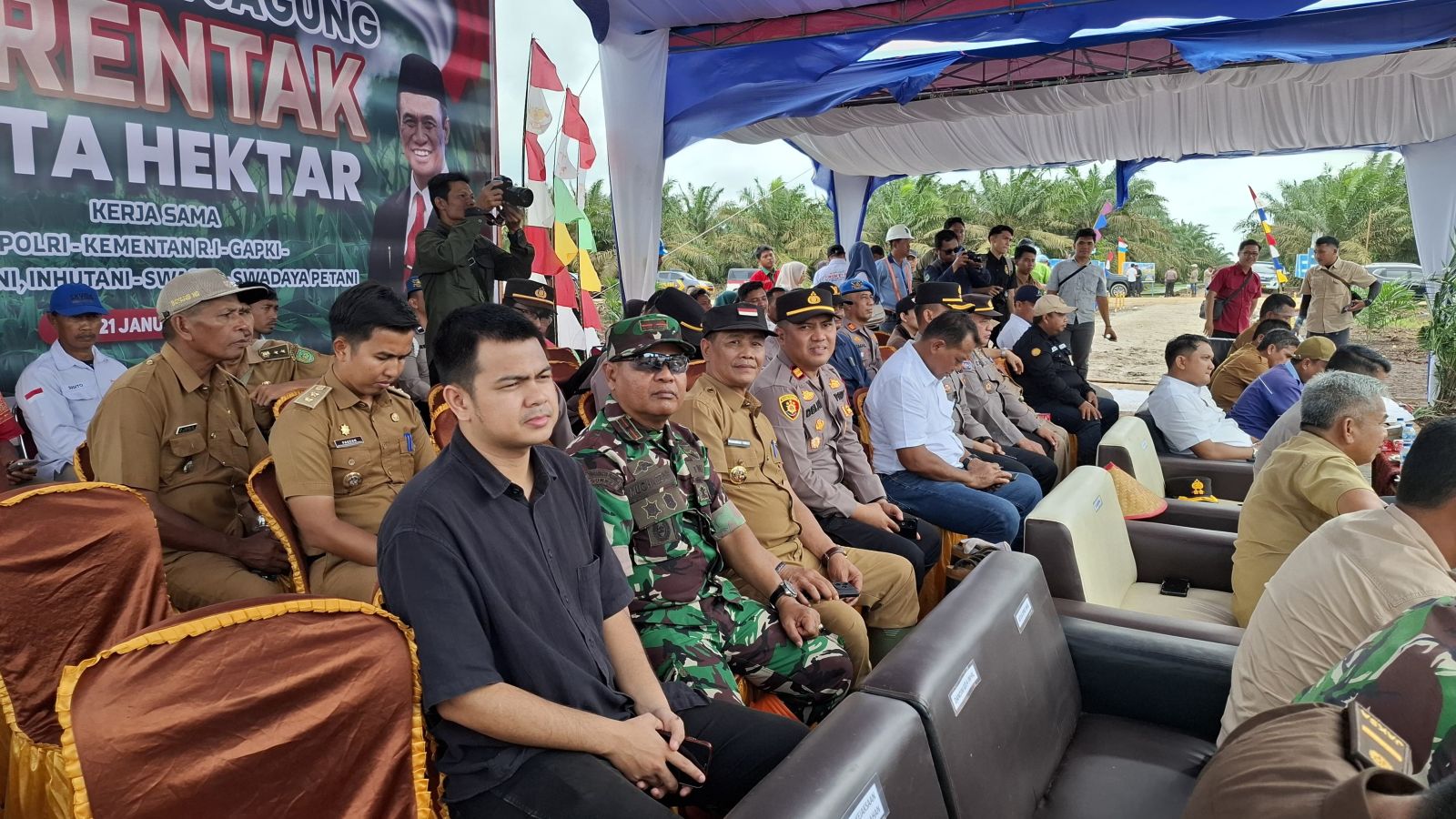 Turut hadir dalam giat tersebut PJ. Bupati Inhil diwakilkan Asisten 2 Bpk Junaidi, S.Sos, Ketua DPRD Inhil diwakilkan Wakil Ketua 2, Dandim 0314/Inhil diwakilkan Kapten Inf Tarmizi, Kapolres Inhil AKBP Farouk Oktora, S.H.,S.IK, Kepala Kejaksaan Negeri Tembilahan, Kadis Pertanian Kab. Inhil, Kadis Perkebunan Kab. Inhil, Kepala BPMPD Kab. Inhil, Kepala Bulog Kab. Inhil, Ketua APKASINDO Kab. Inhil, Pimpinan PT. SAGM Beserta seluruh Manajemen, Camat Tempuling Bpk M. Yunus S.Sos, Danramil 03/Tempuling Letda Arm Muchazzar, Kapolsek Tempuling Iptu Delni Atma Saputra, Lurah/Kades Se-Kec. Tempuling, Tokoh Agama Kec. Tempuling, Tokoh Masyarakat Kec. Tempuling dan Tamu Undangan ±100 orang.(*)