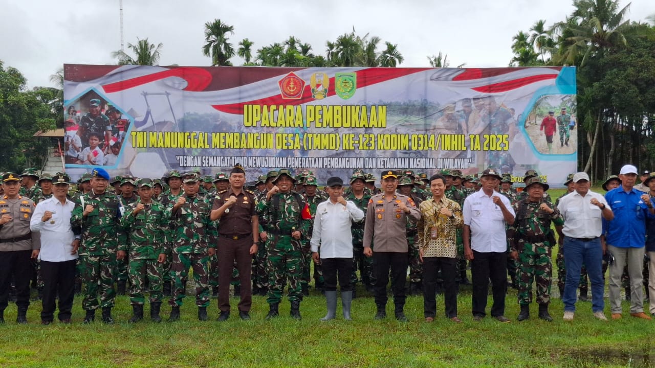 Upacara pembukaan TMMD ke-123 ini digelar di lapangan sepak bola yang berada di Desa Mumpa Kecamatan Tempuling, pada pukul 09.00 Wib.