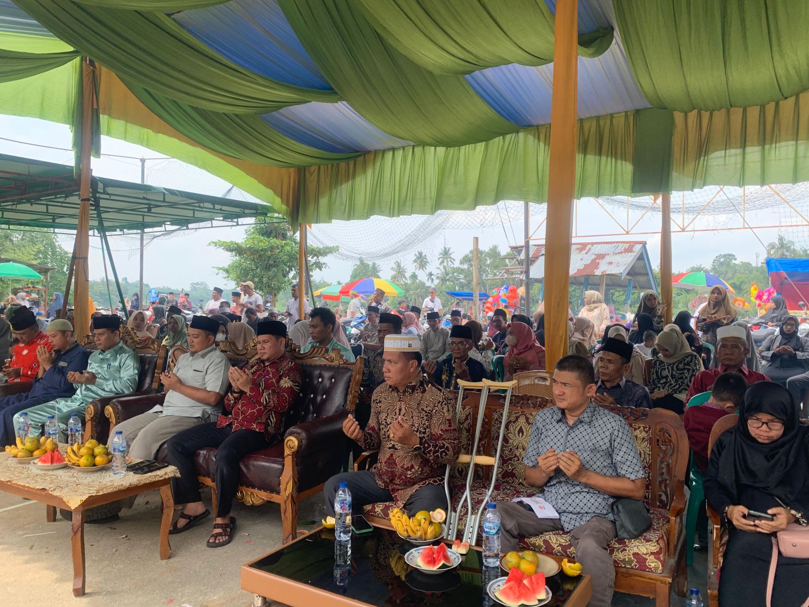 Tampak hadir Anggota DPR RI Dr. H. Syahrul Aidi Maazat, L.C., M.A yang diwakili staf ahli, Ketua DPRD Kabupaten Kampar H. Ahmad Taridi S.H.I yang diwakili staf ahli fraksi Gerindra Yusrizal, Camat Kampa Rahmat Fajri, S.STP, Pj Kepala Desa Sungai Tarap Eriyanto, Kadus, RT, RW, perangkat desa serta seluruh masyarakat Desa Sungai Tarap.