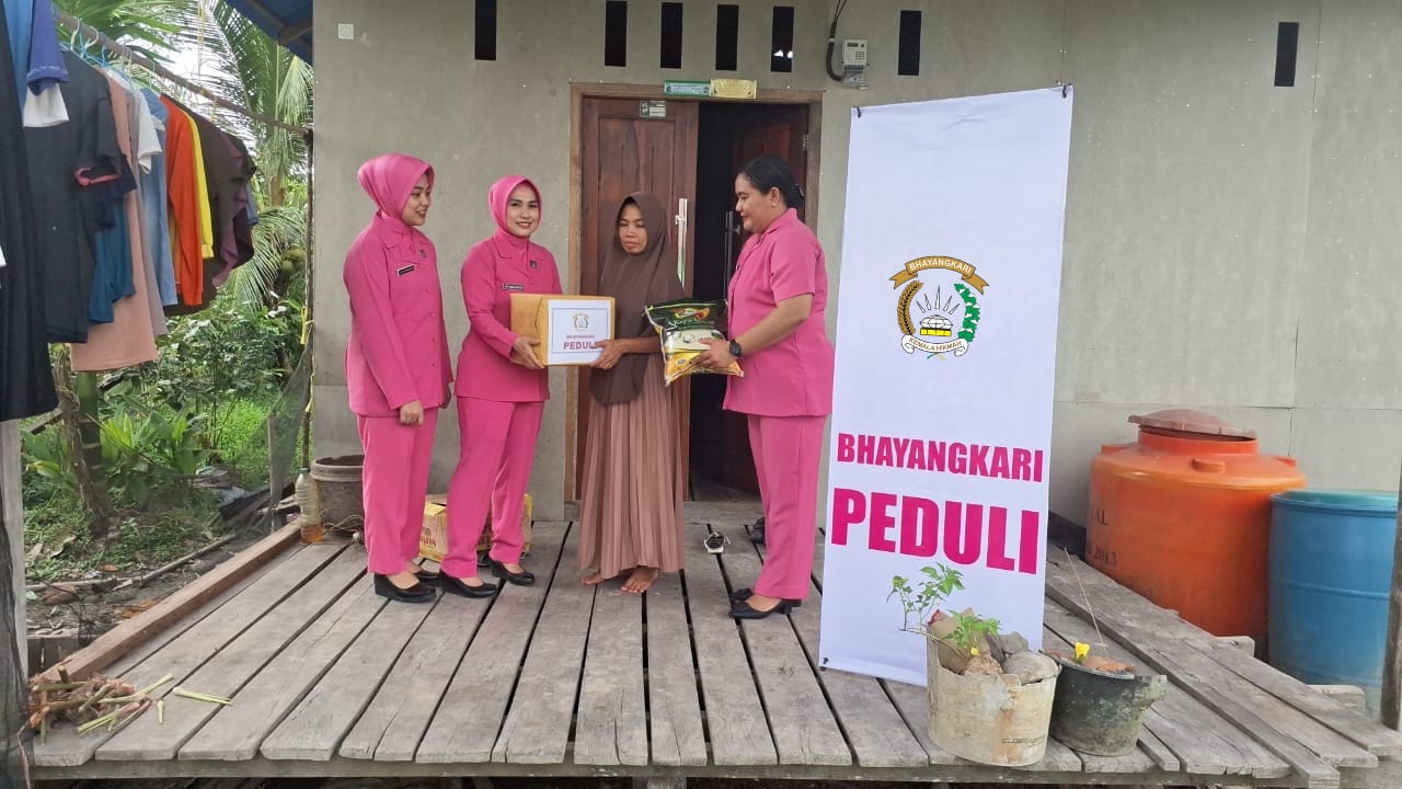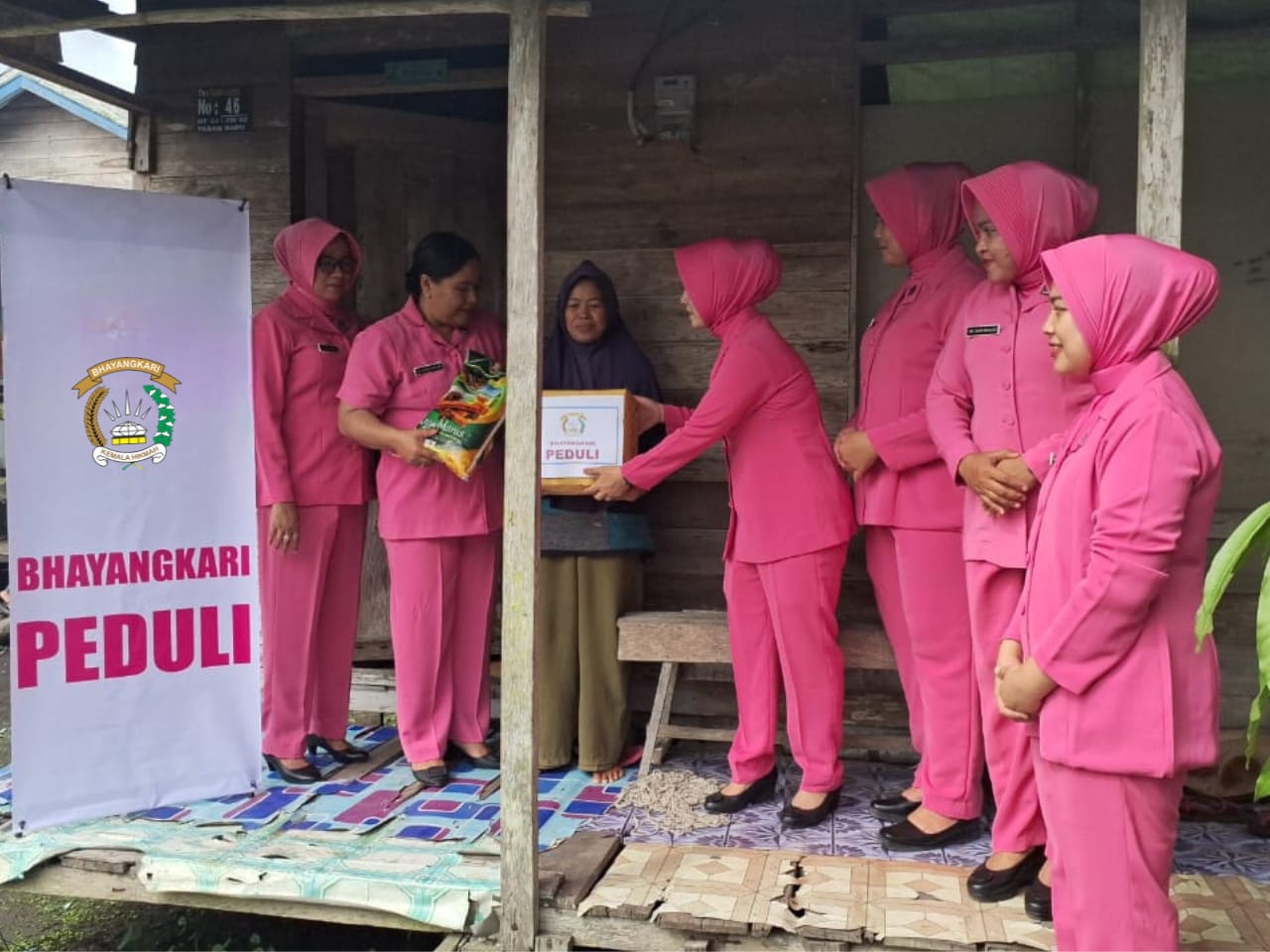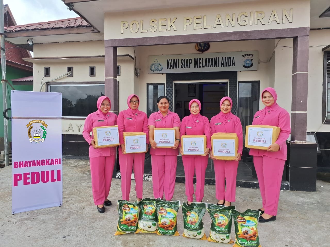 Bhayangkari Polsek Pelangiran Gelar Bakti Sosial, Bagikan Sembako kepada Warga Kurang Mampu