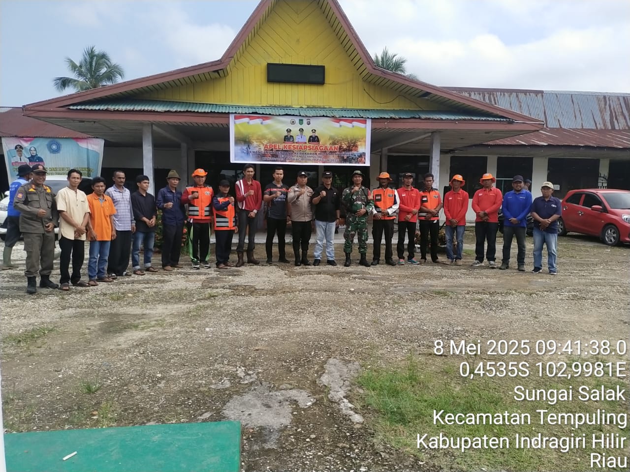 TEMPULING - Dalam rangka meningkatkan kesiapsiagaan dan kesadaran masyarakat dalam mencegah kebakaran hutan dan lahan (Karhutla), Sertu Angga W. Laksmana, Babinsa Koramil 03/Tempuling, menghadiri kegiatan apel kesiapsiagaan pencegahan dan penanganan Karhutla di Kecamatan Tempuling, Kabupaten Indragiri Hilir. Kegiatan ini menjadi momentum penting untuk memastikan kesiapsiagaan dan kesadaran masyarakat dalam mencegah Karhutla. Kamis 08/05/2025).