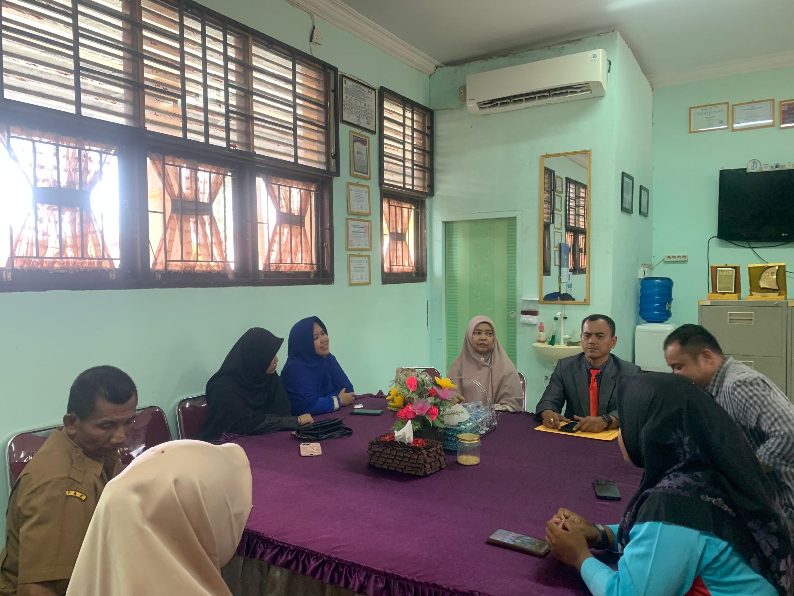 Masniar yang didampingi kuasa hukumnya Zulkifli melakukan konfirmasi kepada pihak sekolah yaitu Plt Kepala Sekolah dan Komite Sekolah.