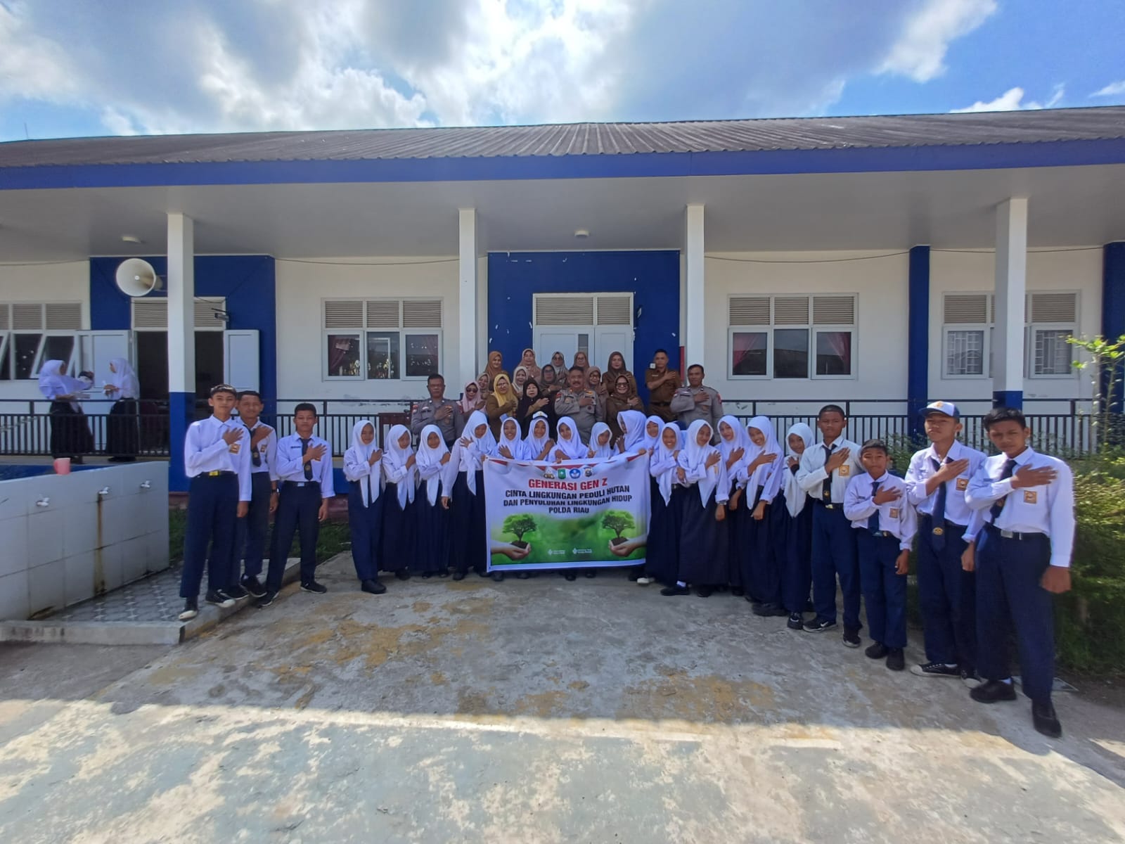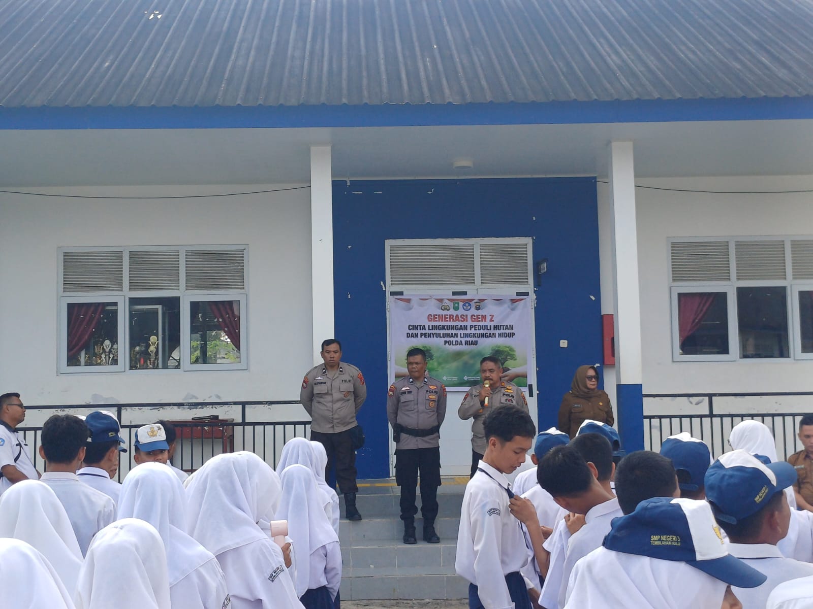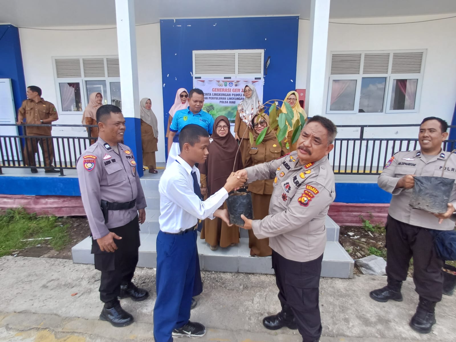 Polres Inhil Gelar Penyuluhan Green Policing dan Tanam Pohon Bersama Siswa SMPN 3 Tembilahan Hulu