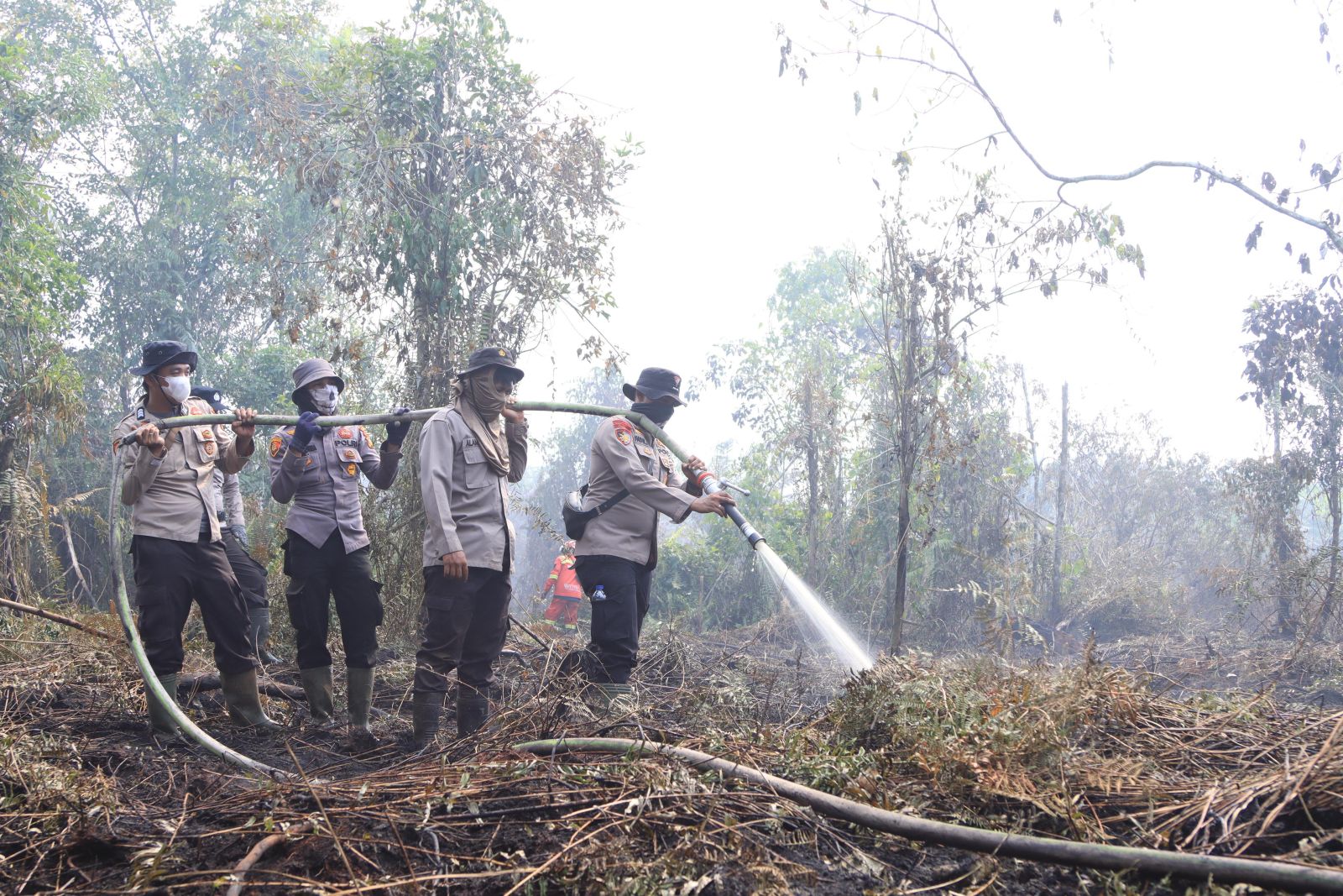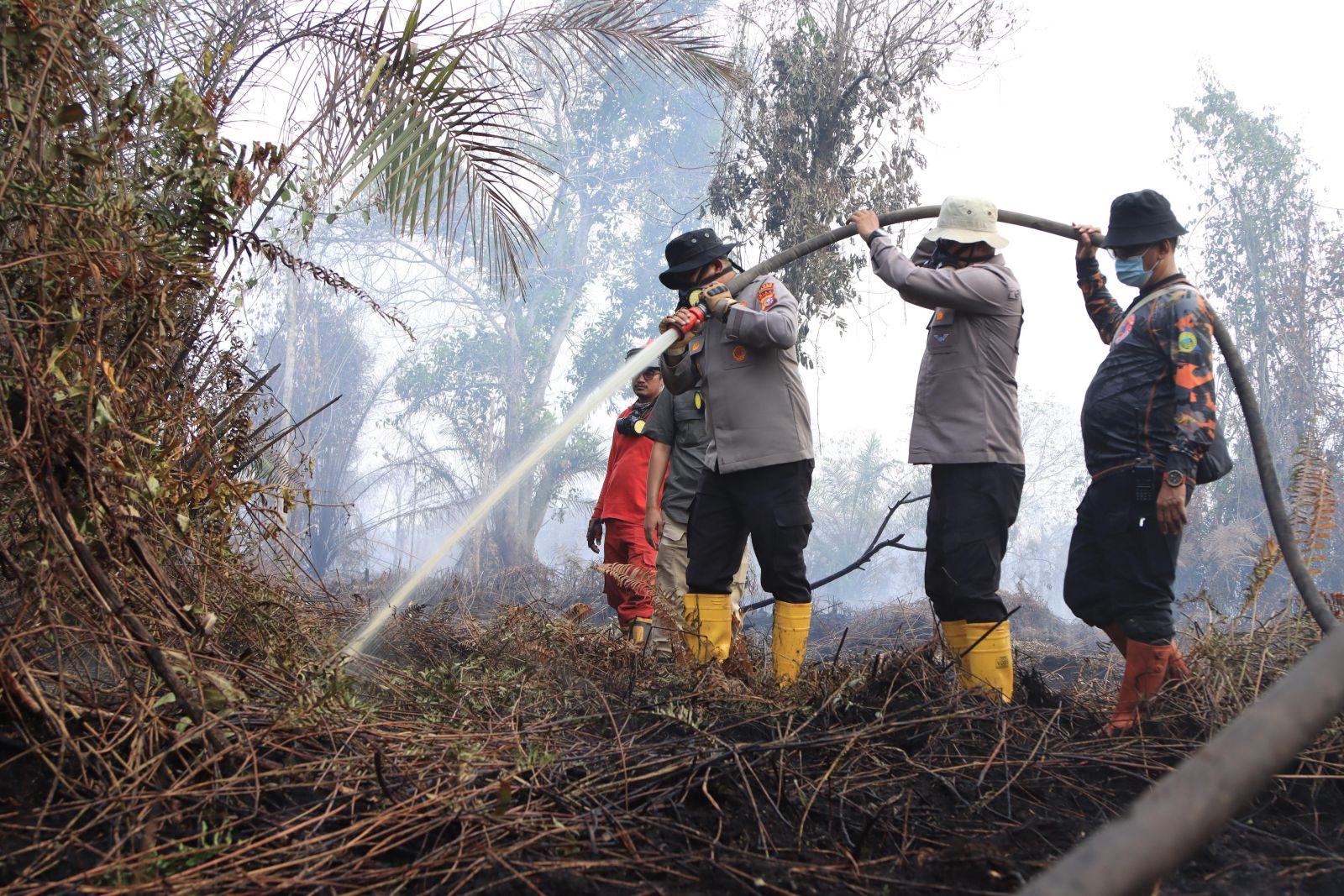 Personel gabungan dari Polres Inhil, Kodim 0314/Inhil, BPBD, Manggala Agni, Masyarakat Peduli Api (MPA), hingga petugas dari PT. ASI dan PT. SRL.