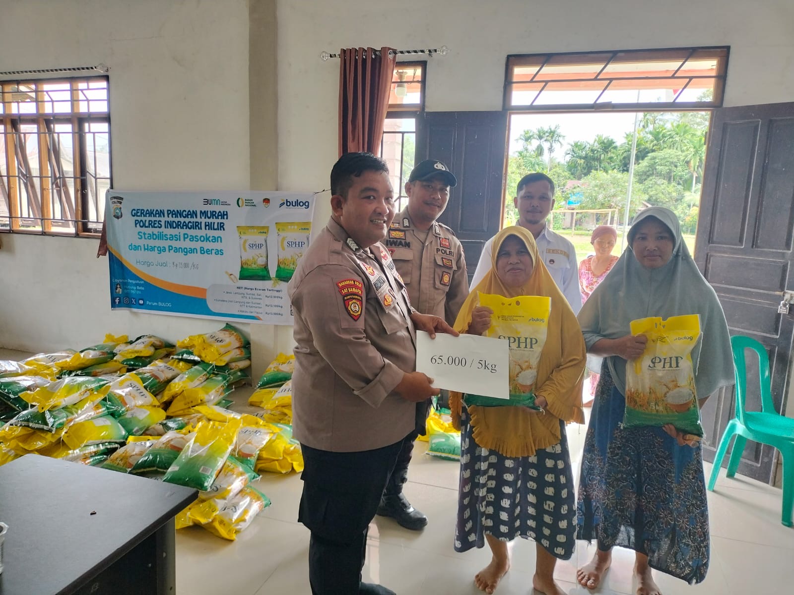 Gaung - Polsek Gaung melaksanakan Kegiatan Gerakan Pangan Murah Polres Inhil dalam rangka stabilisasi pasokan dan harga pangan beras di wilayah hukum Polsek Gaung. Kegiatan ini dilaksanakan di Desa Terusan Kempas dan Desa Sungai Baru pada Senin, 15 September 2025.