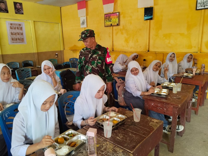 Babinsa Koramil 09/Kmg Bantu Pemberian Makan Bergizi Gratis untuk Meningkatkan Kualitas Pendidikan