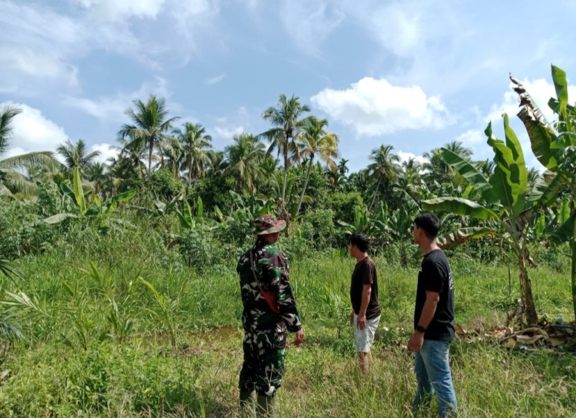 INHIL - Babinsa Koramil 07/RTH, Serka Ferry M Barus, melaksanakan kegiatan patroli tapal batas di Parit 1, Kelurahan Pulau Kijang, Kecamatan Reteh, Kabupaten Indragiri Hilir, pada hari Sabtu, 1 November 2025.