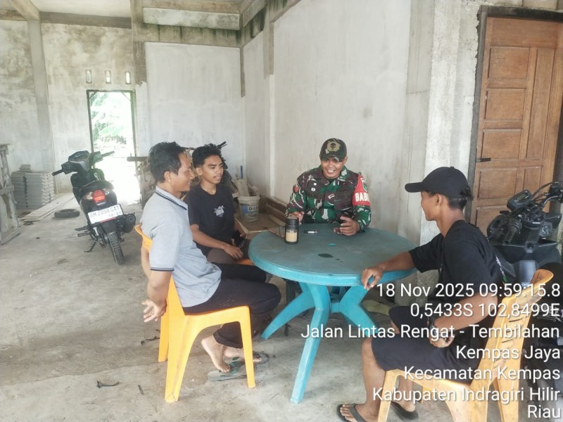TEMPULING, MEDIALOKAL.CO -- Koptu Jalaludin, Babinsa Koramil 03/Tempuling, menunjukkan komitmennya dalam menjaga kebersihan dan keamanan desa melalui kegiatan komunikasi sosial (Komsos) yang dilaksanakan pada hari Selasa, 18 November 2025, pukul 10.00 WIB.