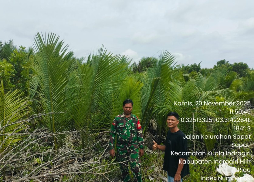 INHIL, MEDIALOKAL.CO -- Babinsa Koramil 04/KDR, Sertu Surachman, melaksanakan patroli tapal batas di Wilayah Kelurahan Sapat, Kecamatan Kuindra, Kabupaten Indragiri Hilir, pada Kamis, 13 November 2025, pukul 10:00 WIB. Kegiatan ini bertujuan untuk memantau situasi keamanan dan ketertiban di wilayah perbatasan.