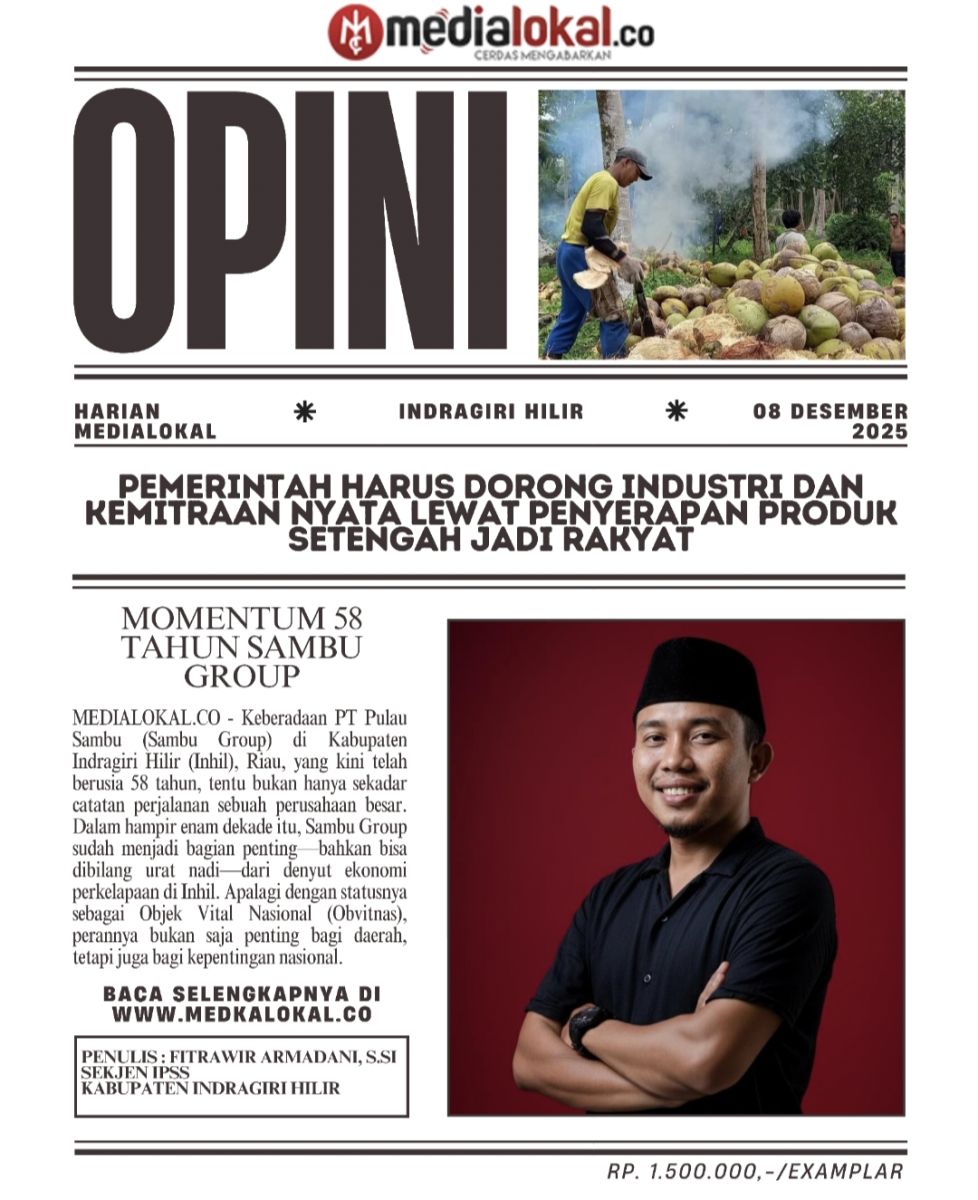 Bagi saya, transformasi kemitraan Sambu Group—dari sekadar pembeli kelapa bulat menjadi penyerap produk setengah jadi rakyat—adalah langkah paling nyata untuk mewujudkan hilirisasi yang adil. Setelah 58 tahun, inilah warisan terbaik yang seharusnya ditinggalkan Sambu Group bagi masyarakat Indragiri Hilir: