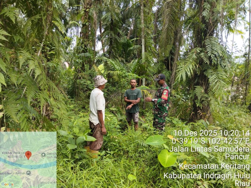 Kemuning, - Koramil 09/KMG melaksanakan patroli dan sosialisasi di Wilayah Desa Pancur, Kabupaten Indragiri Hilir, pada Rabu (10/12, 2025). Kegiatan ini bertujuan untuk memantau situasi keamanan di wilayah perbatasan dan meningkatkan kesadaran masyarakat tentang pentingnya menjaga keamanan.