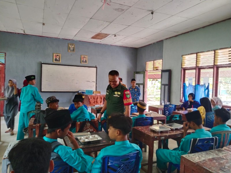 Keritang, - Koramil 0314/Inhil melaksanakan pendampingan kegiatan makan bergizi gratis di Desa Pengalihan, Kecamatan Keritang, Kabupaten Indragiri Hilir, pada Rabu (10/12, 2025). Kegiatan ini bertujuan untuk meningkatkan kualitas gizi anak-anak sekolah di wilayah tersebut.