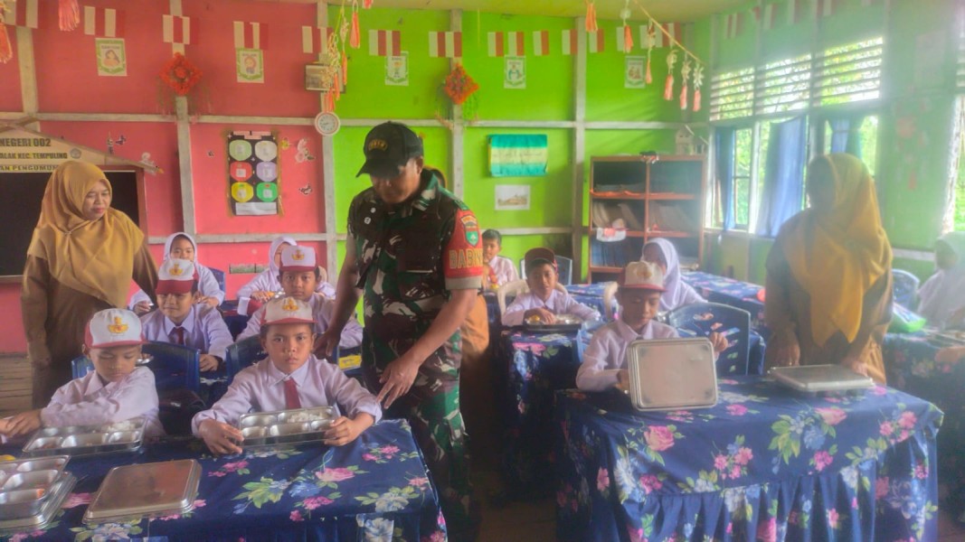 Babinsa Koramil 03/Tpl & SPPG Tempuling: Gerak Cepat Bagikan 2580 Porsi Makan Sehat Pada Anak-anak