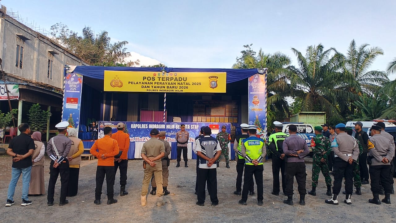 INHIL, Medialokal.co - Malam pergantian tahun adalah momen yang sangat dinantikan oleh banyak orang. Untuk memastikan keamanan dan ketertiban, Polres Indragiri Hilir (Inhil) mengadakan Apel Gabungan Pengamanan Malam Tahun Baru di Pos Pelayanan Terpadu Pengamanan Natal dan Tahun Baru 2026, Kecamatan Kemuning.