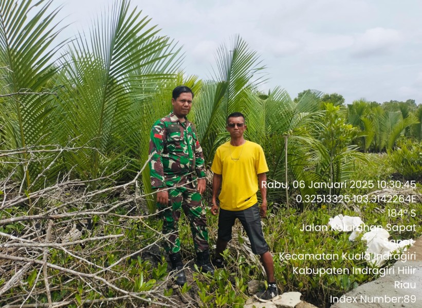 INHIL, Medialokal.co - Babinsa Koramil 04/KDR melaksanakan patroli Tapal Batas di wilayah Kelurahan Sapat, Kecamatan Kuindra, Kabupaten Indragiri Hilir, pada Selasa, 6 Januari 2026, pukul 10:00 WIB. Patroli ini bertujuan untuk memastikan keamanan dan ketertiban di wilayah perbatasan.