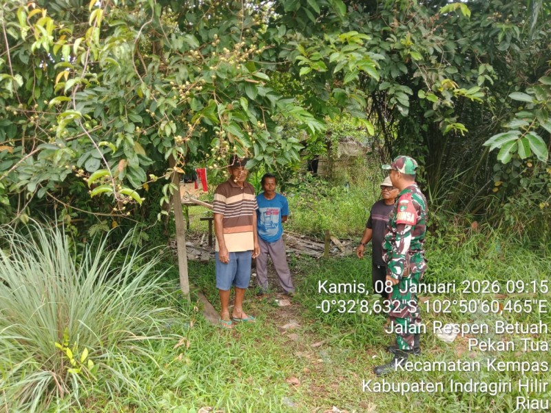 KEMPAS – Di tengah kondisi cuaca yang masih berpotensi memicu kebakaran hutan dan lahan (Karhutla), Babinsa Koramil 03/Tempuling Serda Riko Saputra tidak tinggal diam. Pada hari Kamis pukul 09.00 hingga 10.00 WIB, ia langsung turun lapangan untuk melaksanakan patroli khusus di kawasan tapal batas Desa Pekantua, Kecamatan Kempas, Kabupaten Indragiri Hilir – sebuah area yang menjadi prioritas pengawasan karena kerap menjadi titik rawan terjadinya kebakaran.