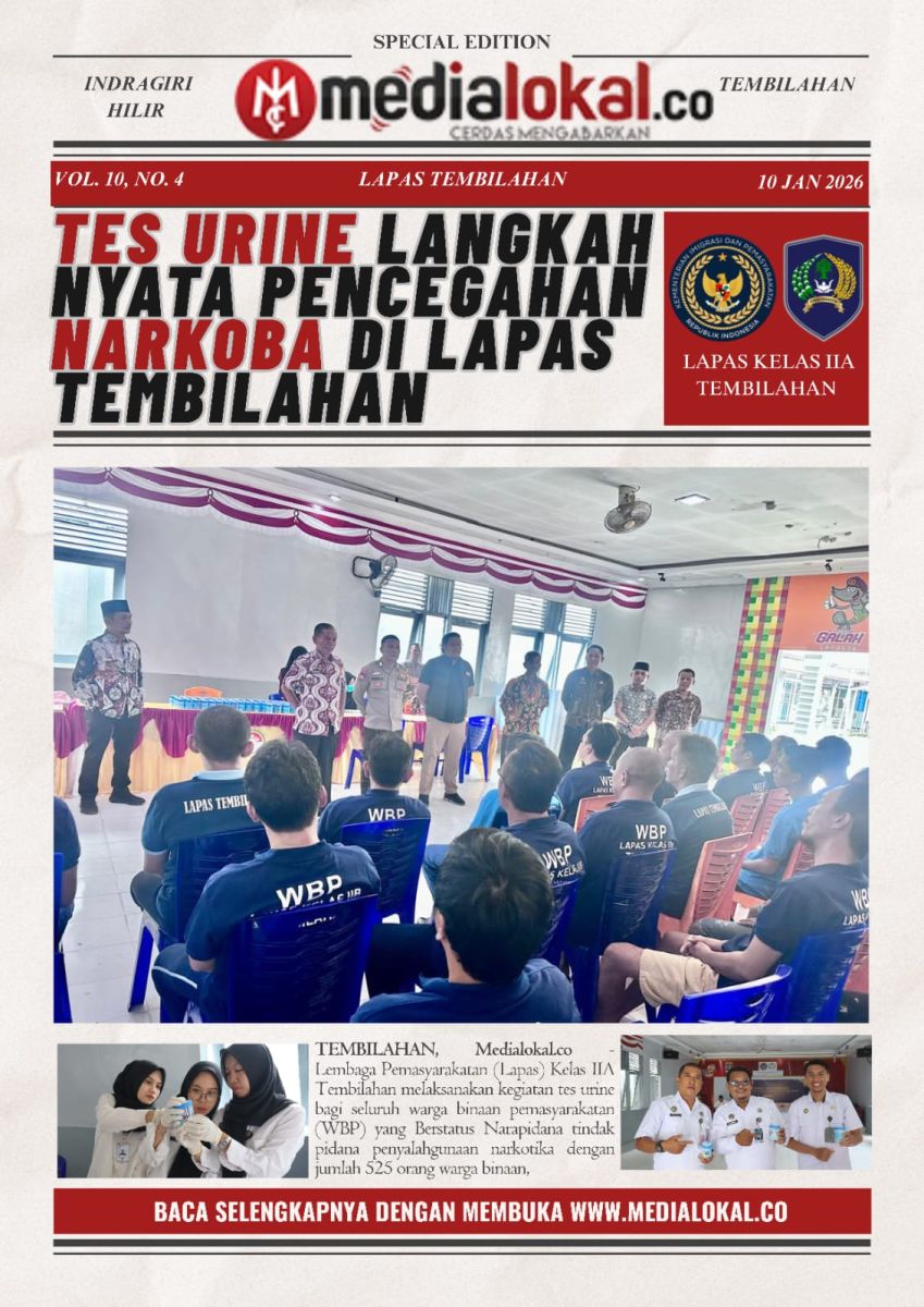 TEMBILAHAN, Medialokal.co - Lembaga Pemasyarakatan (Lapas) Kelas IIA Tembilahan melaksanakan kegiatan tes urine bagi seluruh warga binaan pemasyarakatan (WBP) yang Berstatus Narapidana tindak pidana penyalahgunaan narkotika dengan jumlah 525 orang warga binaan, sebagai langkah nyata dalam upaya pencegahan dan pemberantasan peredaran narkoba di lingkungan pemasyarakatan.