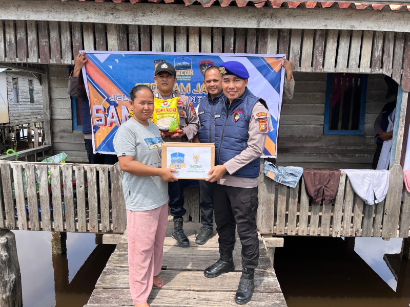 Pelalawan - Sat Polairud Polres Pelalawan terus menunjukkan komitmennya dalam mendukung kesejahteraan masyarakat pesisir melalui pelaksanaan Program JALUR (Jelajah Riau Untuk Rakyat), yang merupakan program unggulan Kapolda Riau. Kegiatan ini dilaksanakan di wilayah pesisir perairan Dusun Sering Barat, Desa Sering, Kecamatan Pelalawan, Kabupaten Pelalawan, dengan menggandeng Baznas Kabupaten Pelalawan sebagai mitra strategis.