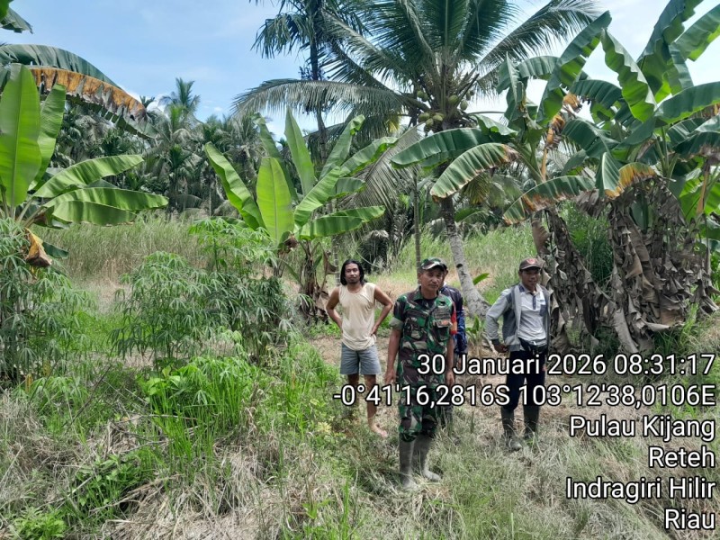 RETEH, Medialokal.co - Koramil 07/RTH, Kodim 0314/Inhil, melaksanakan patroli tapal batas di Parit 1, Kelurahan Pulau Kijang, Kecamatan Reteh, Kabupaten Indragiri Hilir, pada Jumat (30/1/2026) pukul 08.30 WIB. Kegiatan ini dipimpin oleh Babinsa Pelda Nofiandi, dengan tujuan untuk memantau situasi keamanan di wilayah tapal batas dan mencegah terjadinya kebakaran hutan dan lahan (Karhutla).