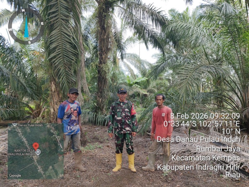 KEMPAS - Babinsa Koramil 03/Tpl Kodim 0314/Inhil Sertu Ichlas Manalu, melaksanakan patroli tapal batas di wilayah Desa Danau Pulai Indah, Kecamatan Kempas, Kabupaten Indragiri Hilir. Minggu (08/02/2026).