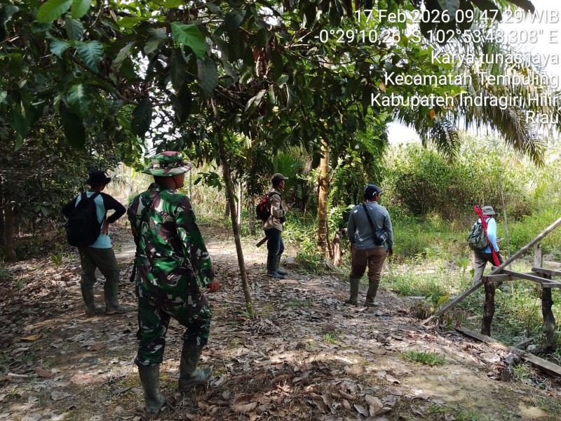 Babinsa Koramil 03/Tpl Sertu Pardamaean Siregar saat menyasar kelahan perkebunan kelapa milik warga yang ada di daerah Desa Mumpa Kecamatan Tempuling. Selasa (17/02/2026).