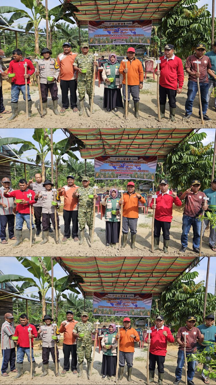KEMUNING, Medialokal.co - Polsek Kemuning melaksanakan penanaman jagung serentak kuartal I dalam rangka mendukung swasembada pangan di Jln. Penunjang Desa Limau Manis Kec. Kemuning Kab. Inhil, pada Sabtu (7/3/2026).