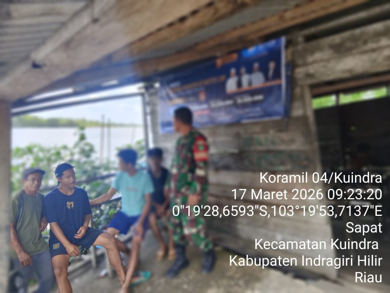 INHIL, Medialokal.co - Babinsa Koramil 04/KUINDRA, Serda Erwin Savitri, melaksanakan kegiatan Komunikasi Sosial (Komsos) di Kampung Pancasila, Kelurahan Sapat, Kecamatan Kuindra, Kabupaten Indragiri Hilir, pada Selasa (17/3/2026).