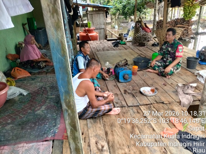 KUINDRA, Medialokal.co - Babinsa Koramil 04/Kuindra, Serda Ali B. Harahap, melaksanakan kegiatan Komunikasi Sosial (Komsos) di Kampung Pancasila, Kelurahan Sapat, Kecamatan Kuindra, Kabupaten Indragiri Hilir, pada Jumat (27/3/2026).